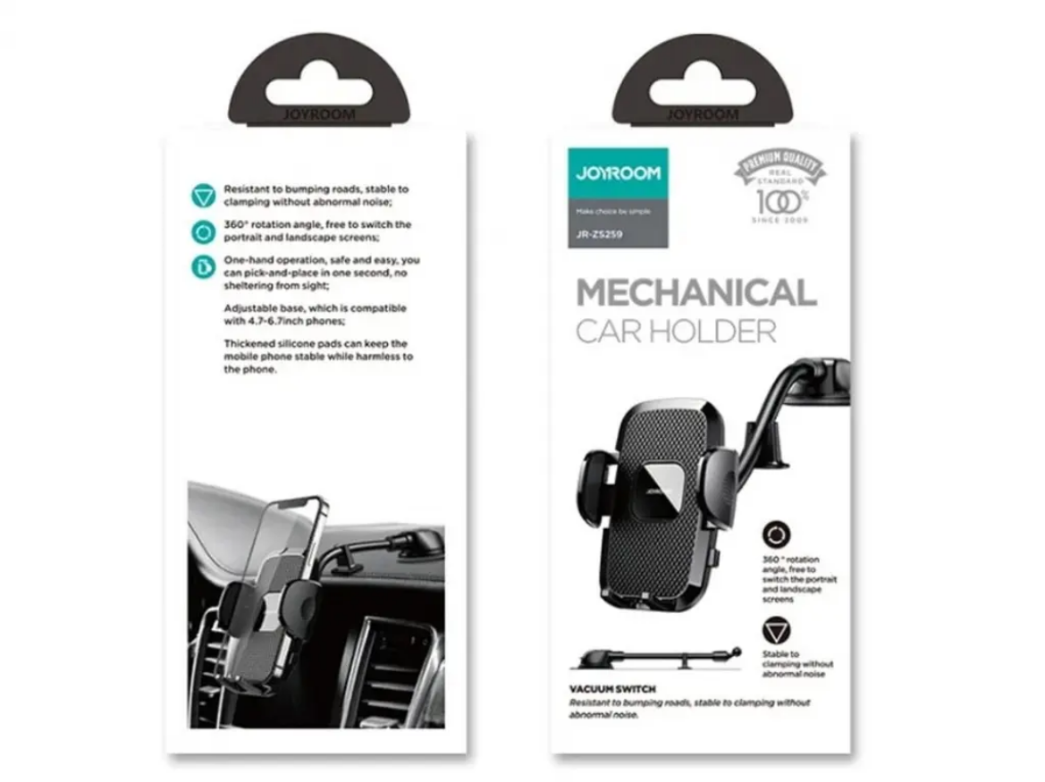 دیگر مثل قدیم برای پیدا کردن مسیر نیازی به راهنما یا نقشههای کاغذی یا پرسوجو کردن نداریم. فقط کافیست اینترنت موبایل را روشن کنیم و به راحتی به مقصد برسیم. اما برای اینکه یک راننده با نگاه کردن به موبایل دچار هواسپرتی نشود نیاز به ابزاری مطمئن دارد به نام هولدر موبایل. هولدرهای متنوع در بازار وجود دارد که نمونهای از آن را کمپانی جویروم با عنوان تجاری Joyroom Mechanical Car holder JR-ZS259 طراحی و تولید کرده است. این محصول جویروم برای نصب روی داشبورد یا شیشه جلوی خودرو طراحی شده است و با استفاده از یک چسب قوی به سطح میچسبد.