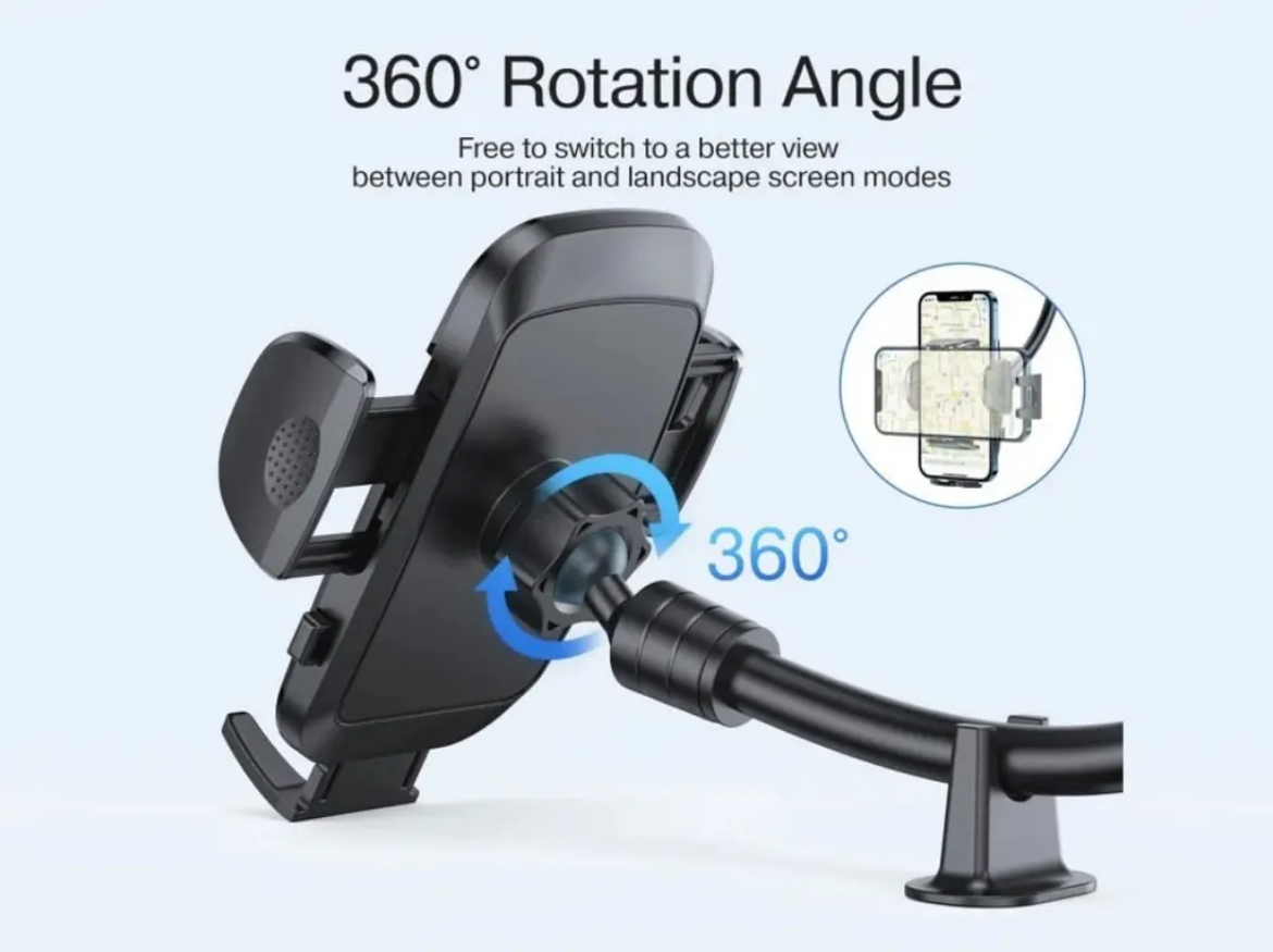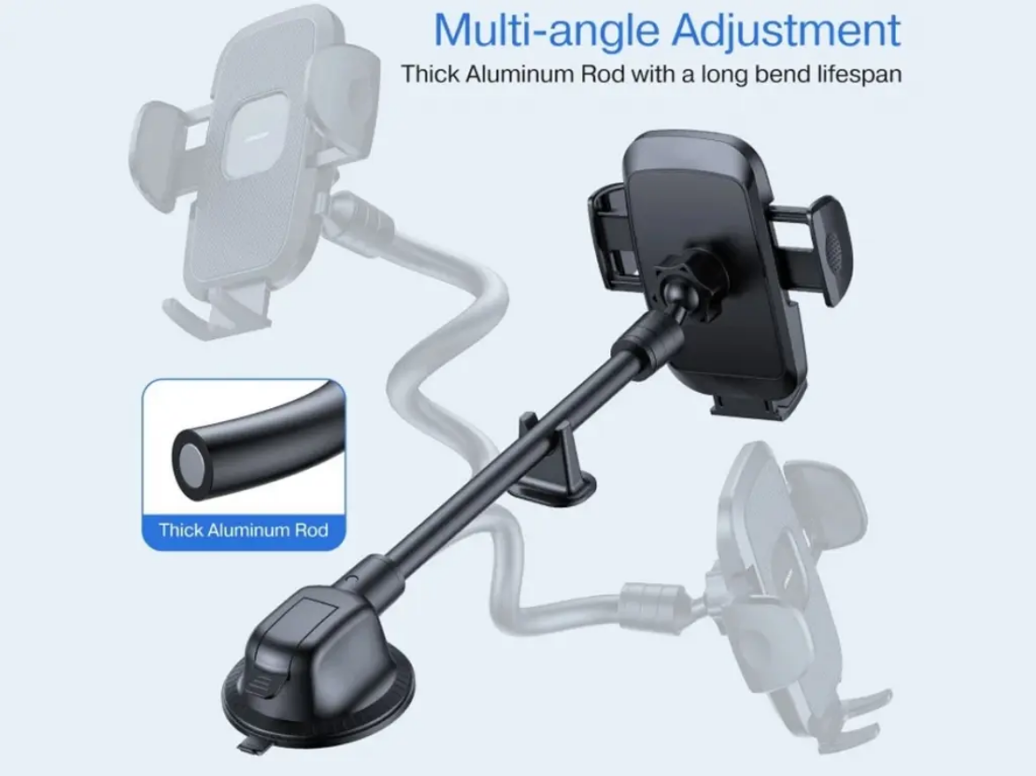 دارای یک بازوی آلومینیومی با طول بلند و قابل تنظیم است که دوام بالایی در برابر تغییر شکل و خمیدگی دارد. دلیل طراحی این طول بلند هم این است که راننده به راحتی به موبایل خود تسلط داشته باشد و آن را در نزدیکترین حالت ممکن به خود قرار دهد. این بازو از چرخش 360 درجهای برخوردار بوده و قابل تنظیم است و میتوانید با توجه به نیازتان موبایل را در دیدرستان قرار دهید.